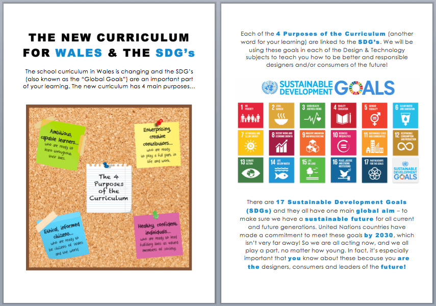 | SDG’s Passport | The SDG’s are central to the new Curriculum for Wales. Within D&T we are able to teach children about the goals across our disciplines. I have created this SDG’s passport for use within my classroom. It’s designed to be used throughout KS3 starting at Year 7. Pupils write a short note each time a goal is covered. Then they collect passport stamps which are exchanged for eco-rewards (up to individual school) during year 9. This resource is for sale on TES but I am offering it free of charge here. The passport is copyright protected, you may print as many as you like, and even add your school logo to the cover but SustFashWales credit must remain on the booklet. | SDG’s Passport (Pdf) |
